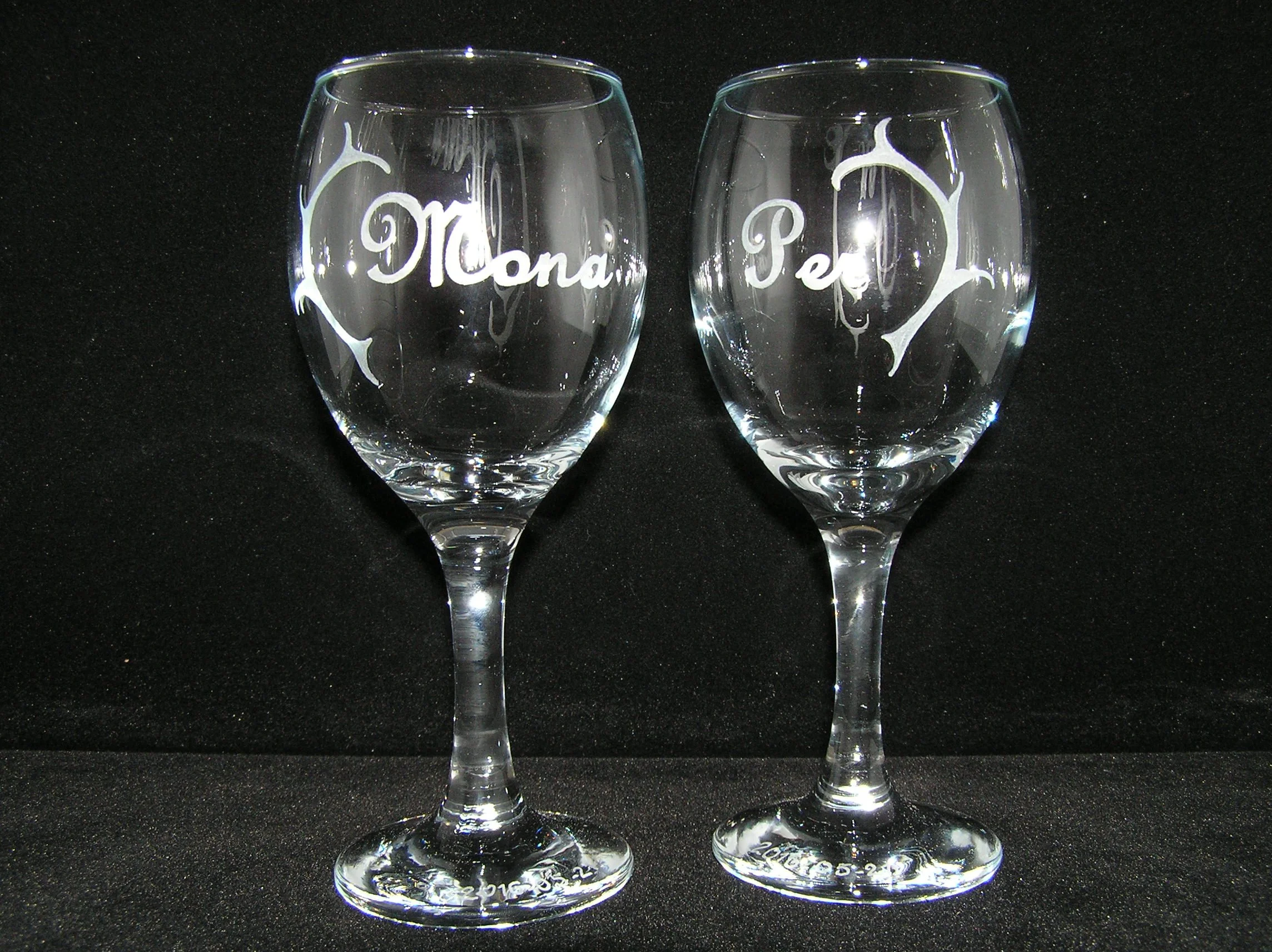 Vinglas med namngravyr. Priset varierar beroende på text.
