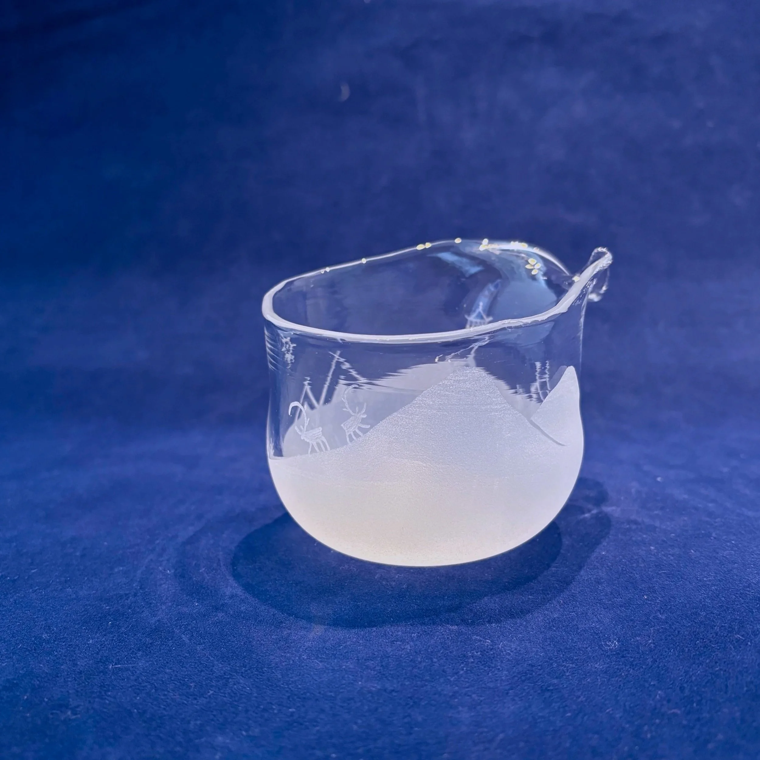 En munblåst ljuslykta i blyfri kristall. Motiven varierar . Ingen lykta blir exakt likadan.