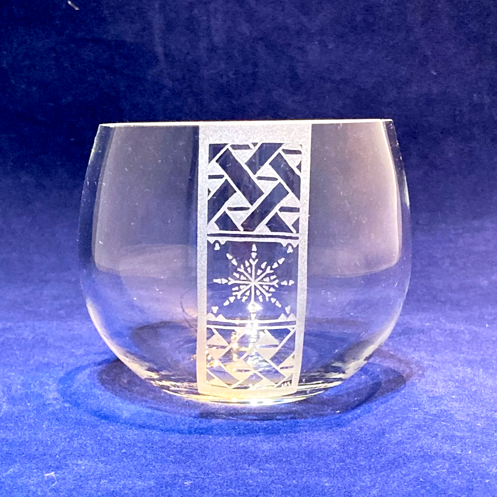 Munblåst ljuslykta i blyfri kristall. Höjd: 9 cm, 11,5 cm diameter. Ljuslyktan har blästrats och sedan handgraverats och på så sätt blir varje lykta unik. Ingen Ljuslykta är den andra lik.