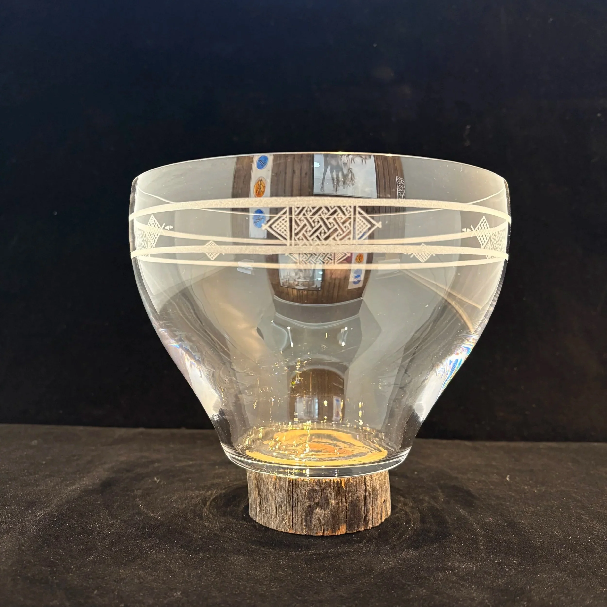 En munblåst skål som är blästrad och graverad. Finns med flera olika motiv. Lämplig till godisskål, efterrättsskål, ljuslykta mm
